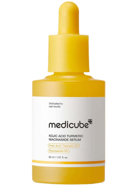 Сыворотка MEDICUBE Kojic Acid Turmeric Niacinamide Serum устраняет тусклость и выравнивает тон, возвращает лицу тонус и здоровое сияние. Деликатно отшелушивает и разглаживает текстуру кожи, запускает регенерацию.