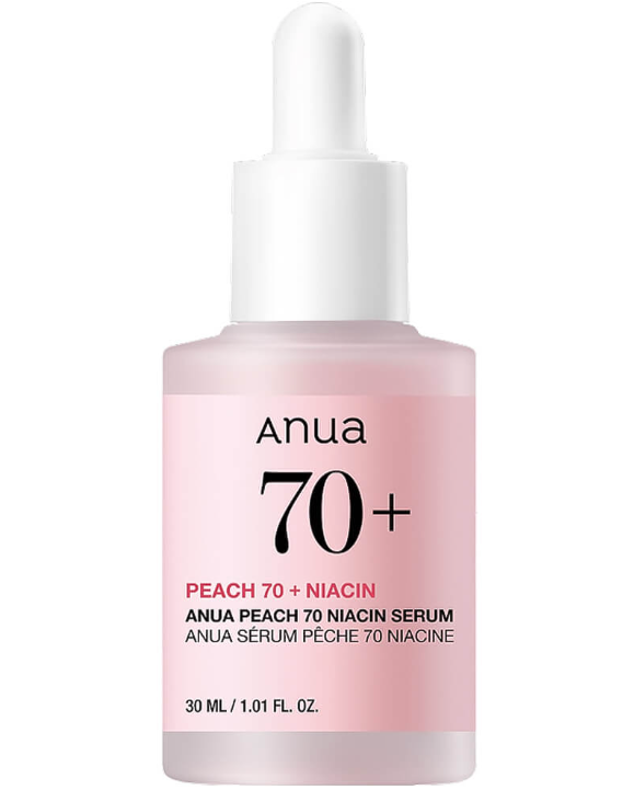 Сыворотка с персиком для гладкой и сияющей кожи Anua Peach 70% Niacin Serum обладает широким функционалом: выравнивает и полирует рельеф эпидермиса, способствует сужению пор, сокращает выработку кожного сала и мягко осветляет общий тон кожи.