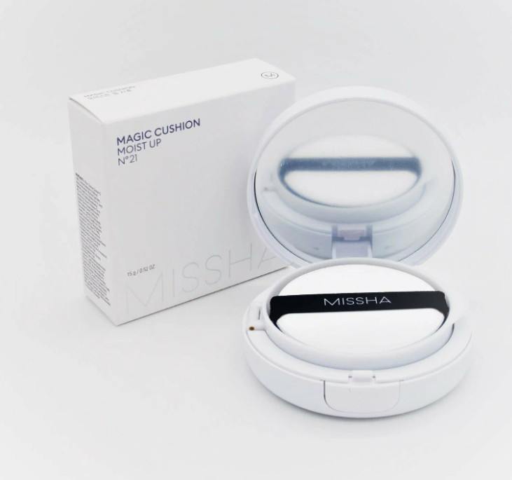 Увлажняющий тональный кушон Missha M Magic Cushion Moist Up SPF50+ PA+++ — средство для создания идеально ровного тона кожи и потрясающе лёгкого, естественного покрытия.